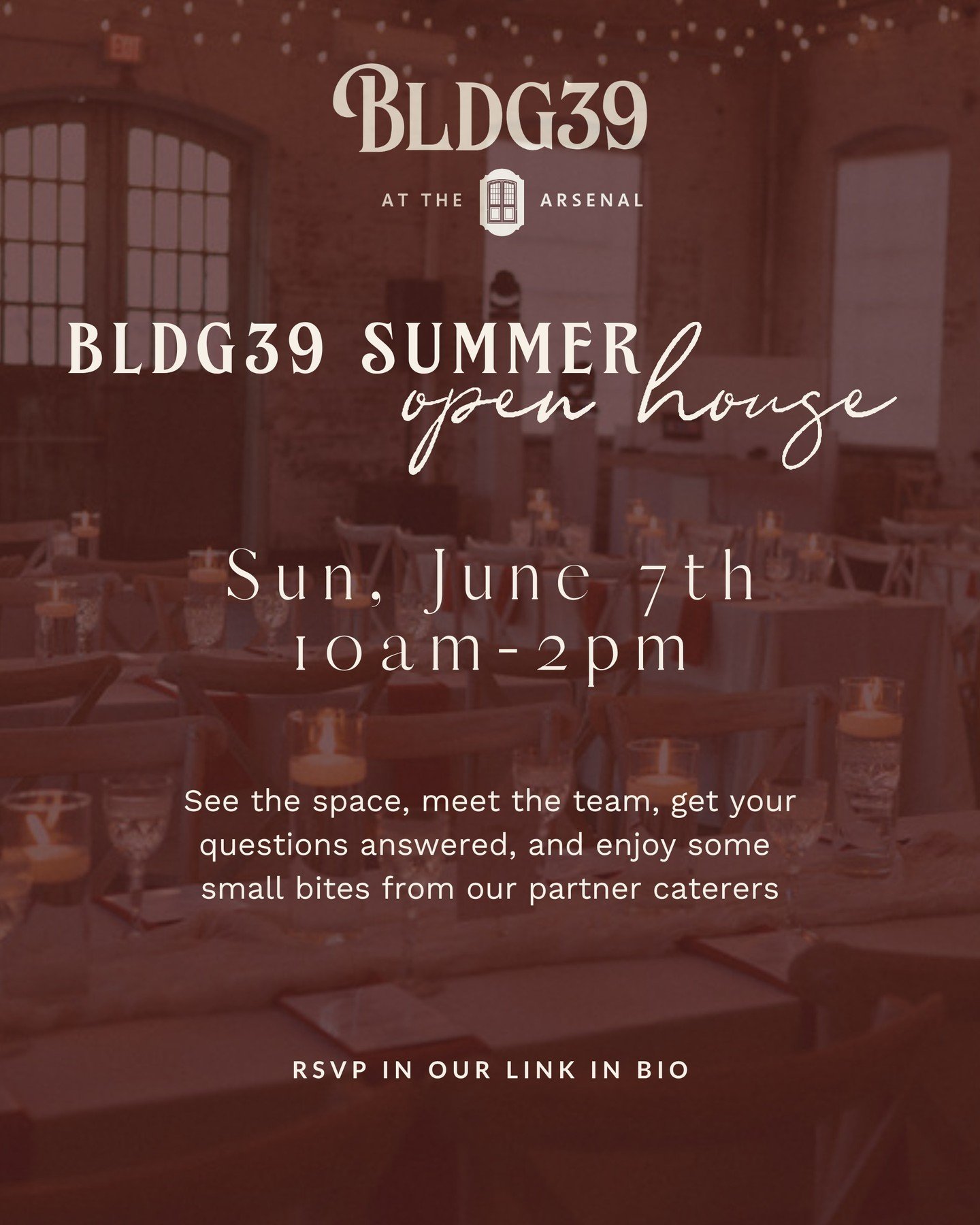 BLDG39 at the Arsenal is a historic & industrial-style event space featuring a 2,600 square-foot open floor plan with indoor and outdoor capabilities that can host all of your event needs!